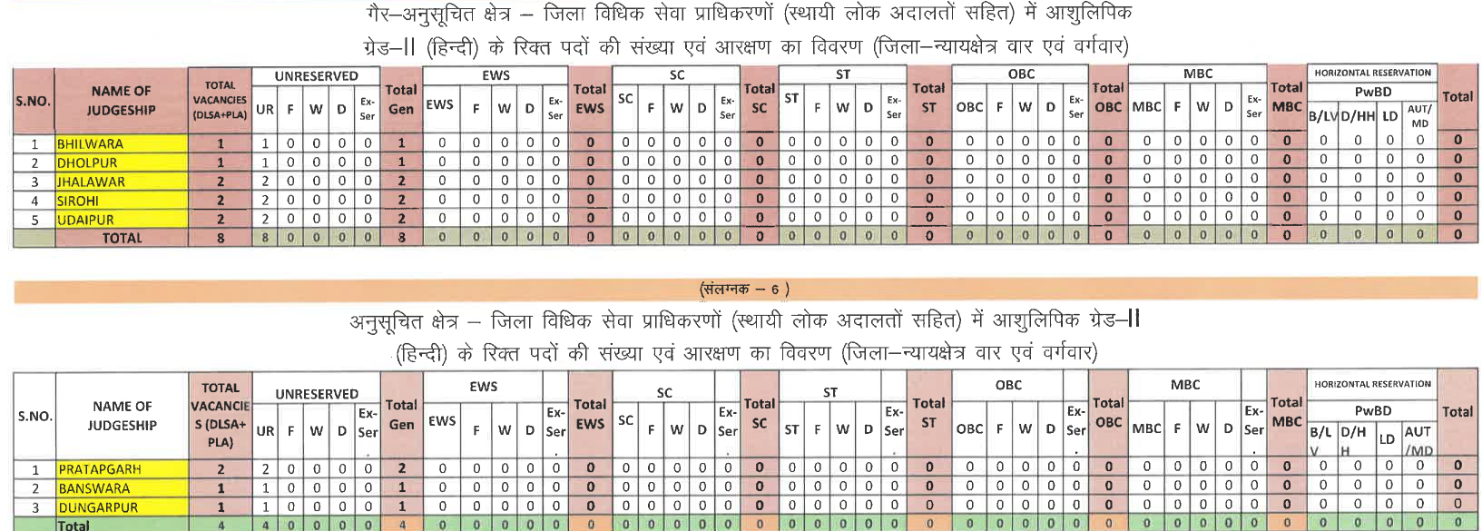 | Stenographer Grade III (English) | 11 | 10+2/Intermediate in Arts or Science or Commerce of the Rajasthan Board of Secondary Education or an Examination equivalent and must possess a good working knowledge of Hindi as written in Devnagri Script & of Rajasthani Dialects and DOEACC or COPA | 18-40 years as on 1st Jan 2026 | Rs.33800-106700 |