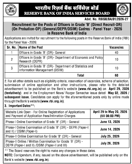 Tags: RBI Officer Grade B Recruitment 2026 , RBI Officer Grade B Online Form 2026 , RBI Officer Grade B Vacancy 2026 , RBI Officer Grade B Recruitment 2026